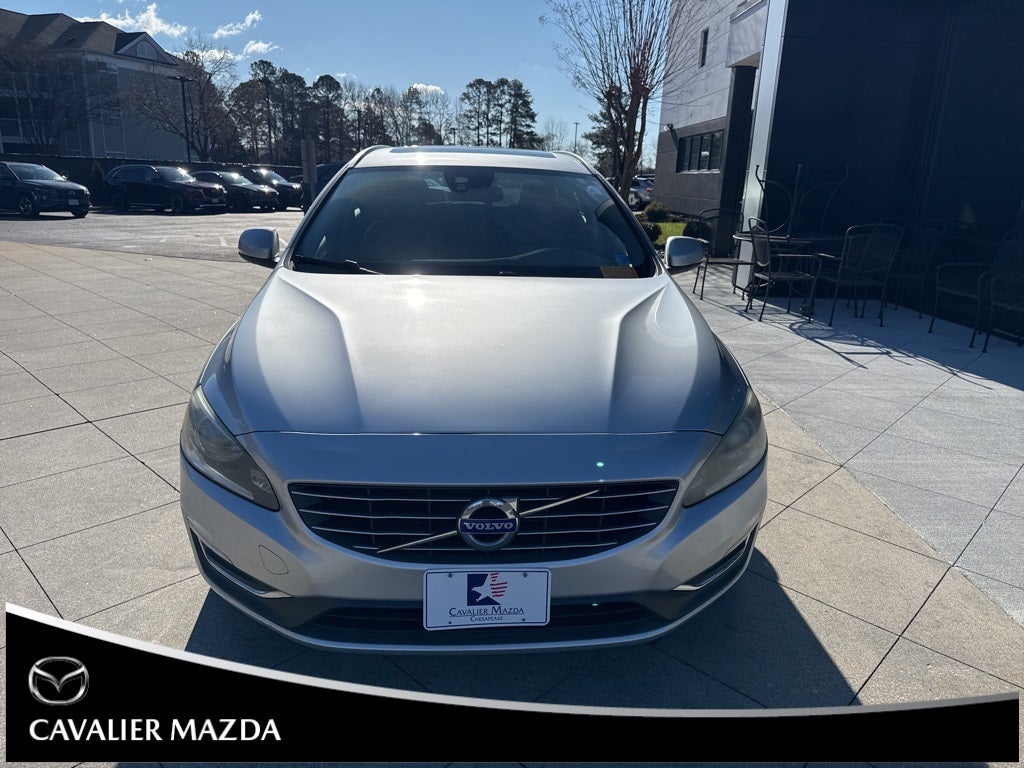 2015 Volvo V60 T5 Premier Bright Silver Metallic FWD Automatic with Geartronic Drive-E 2.0L I4 16V Turbocharged 4-Wheel Disc Brakes, 8 Speakers, ABS brakes, Air Conditioning, AM/FM radio: SIRIUS, Anti-whiplash front head restraints, Auto-dimming Rear-View mirror, Automatic temperature control, Brake assist, Bumpers: body-color, CD player, Delay-off headlights, Driver door bin, Driver vanity mirror, Dual front impact airbags, Dual front side impact airbags, Electronic Stability Control, Four wheel independent suspension, Front anti-roll bar, Front Bucket Seats, Front Center Armrest, Front dual zone A/C, Front reading lights, Heated door mirrors, Illuminated entry, Leather Seating Surfaces, Leather Shift Knob, Low tire pressure warning, Memory seat, MP3 decoder, Occupant sensing airbag, Outside temperature display, Overhead airbag, Panic alarm, Passenger door bin, Passenger vanity mirror, Power adjustable rear head restraints, Power door mirrors, Power driver seat, Power moonroof, Power passenger seat, Power steering, Power windows, Premium audio system: Volvo Sensus, Radio data system, Radio: High Performance AM/FM/CD, Rain sensing wipers, Rear anti-roll bar, Rear fog lights, Rear reading lights, Rear seat center armrest, Rear window defroster, Rear window wiper, Remote keyless entry, Roof rack: rails only, Security system, Speed control, Split folding rear seat, Steering wheel mounted audio controls, Tachometer, Telescoping steering wheel, Tilt steering wheel, Traction control, Trip computer, Turn signal indicator mirrors, Variably intermittent wipers, Wheels: 17 Sadia Alloy.